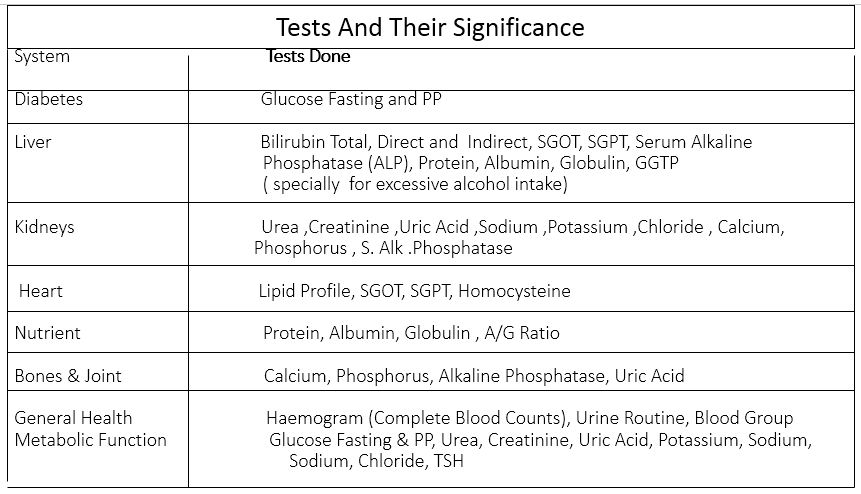 An annual check-up for everybody who is 40 plus. This profile consists of the following 44 important tests covering practically all the parts of your body including the thyroid.